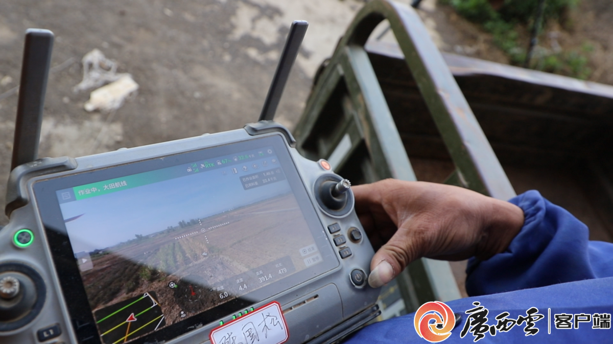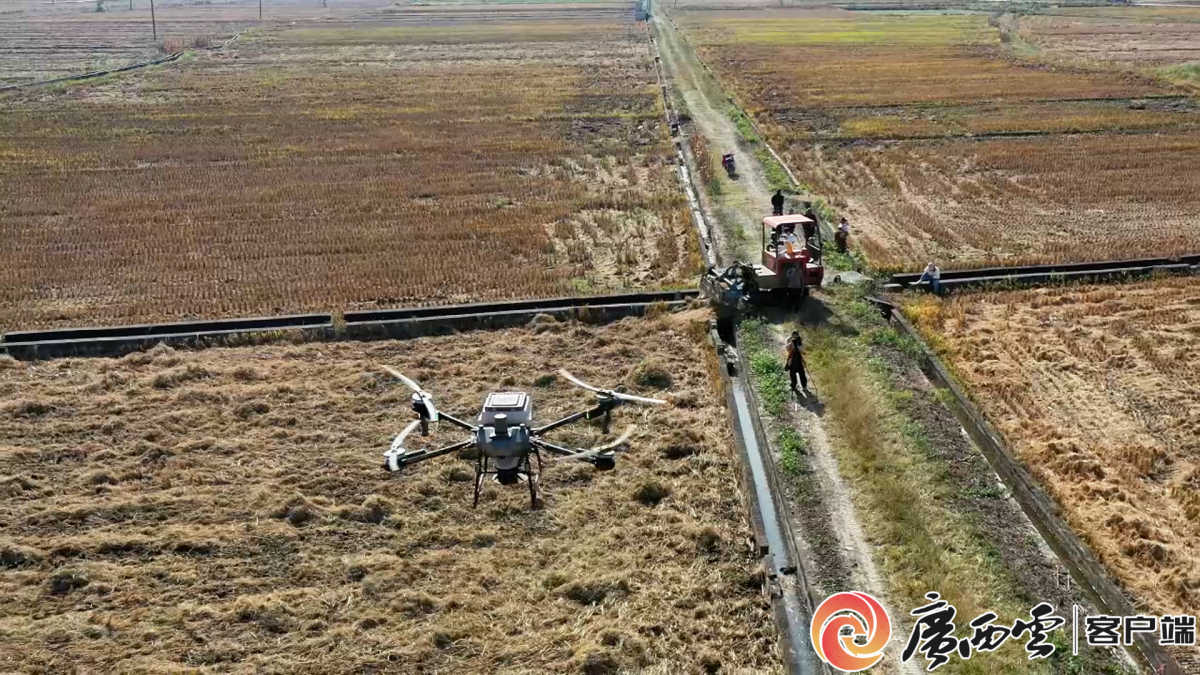 初冬時節(jié),桂平市厚祿鄉(xiāng)延壽村的冬閑田里機器作業(yè)聲不斷。一臺旋耕機率先下田粉碎秸稈,為播種做好準備;緊接著,無人機騰空而起,將希望的麥種精準播撒;隨后,旋耕機再次進場進行覆土作業(yè)。