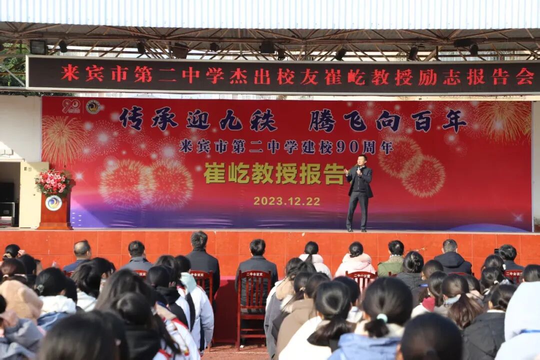來賓市第二中學杰出校友崔屹教授勵志報告會。(資料圖) “崔屹是二中的驕傲,更是每一位師生的榜樣。”來賓市第二中學黨委書記姚昕說,“他以扎實的根基、不懈的奮斗,從校園走向世界頂尖科研舞臺。我們將以他為標桿,深化科技創新教育,激勵更多學子勇攀高峰。” 紅水河靜靜流淌,見證著一座城的哺育,也見證著一個兒子的榮耀。崔屹的故事,仍在桂中大地傳揚。它不只是一個科學家的成長史,更是一種精神的回響——關于自律、關于專注、關于不設限的人生。 而這冬日里的暖陽,正照耀著今天在校園里奔跑的少年。誰又能說,他們之中,不會走出下一個崔屹? |