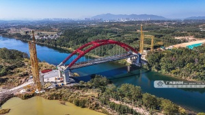 近日,桂林外環高速公路靈川段建設傳來捷報:隨著“最難隧道”王家村隧道雙洞貫通、紅線內最后一棟房屋依法拆除、五福特大橋關鍵節點澆筑完成,征地拆遷工作接近尾聲,項目正式進入常規施工沖刺階段,向著2026年年底竣工通車目標全速邁進。圖為11月28日,桂林外環高速漓江特大橋在進行格子梁接縫焊接作業。陽海翔 攝(廣西云-廣西日報)