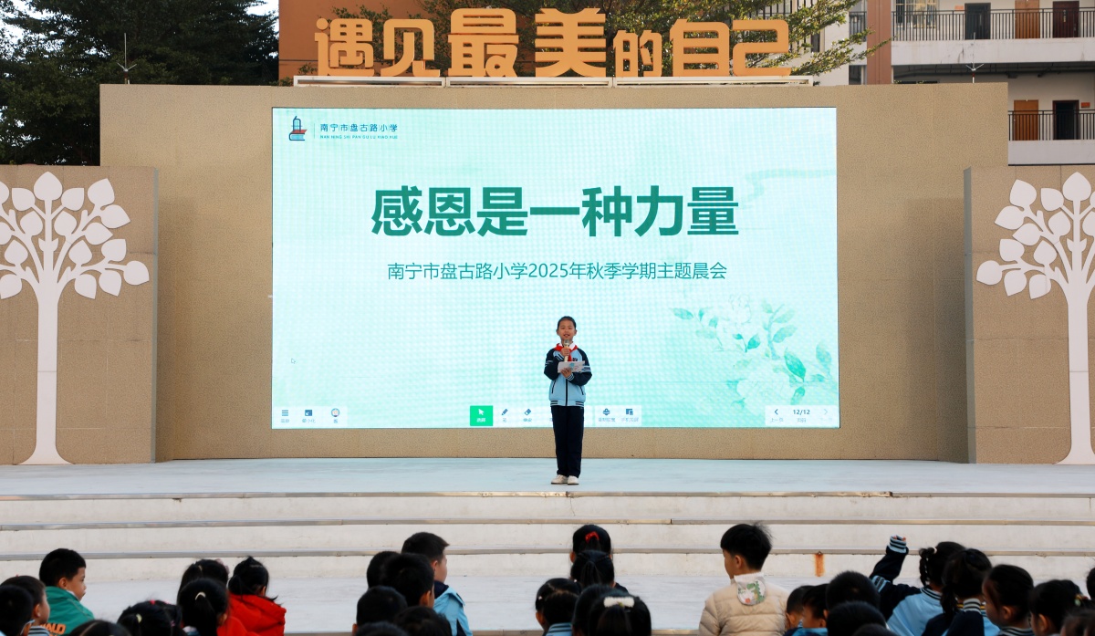 11月24日上午,南寧市盤古路小學全體師生齊聚操場,開展以“感恩是一種力量”為主題的溫馨晨會,開啟充滿愛與感恩的一天。
