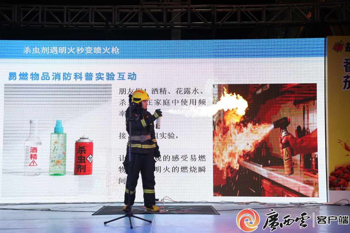 來賓:文藝巡演宣傳消防。 來賓市推出線上線下聯(lián)動的文藝巡演活動,說唱《貝儂唱消防》、小品《消防報名記》等特色節(jié)目,讓安全知識鮮活易懂。活動同步開啟線上直播,消防宣傳員既在現(xiàn)場咨詢臺答疑解惑,又與直播間網(wǎng)友實時互動,“線上+線下”模式突破地域限制,讓消防科普實現(xiàn)全民覆蓋。 桂林消防科普嘉年華亮點(diǎn)紛呈。
