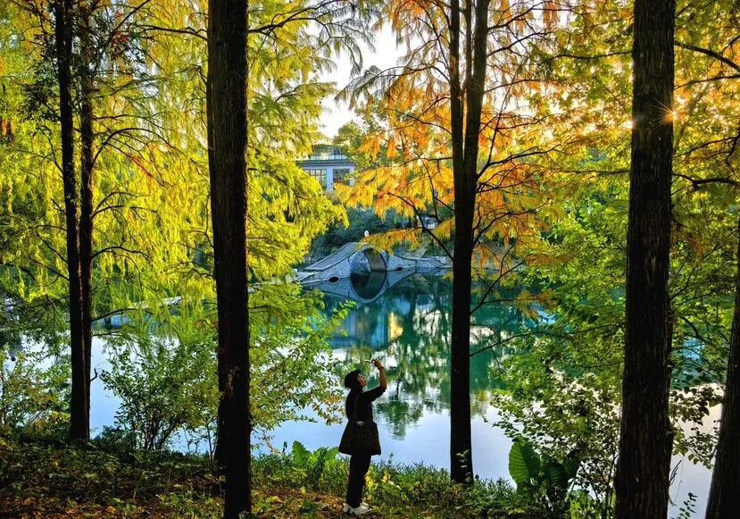 桂林市靖江王城歷史文化旅游休閑街區(qū)的銀杏。通訊員 李騰釗 攝 多元樹種繪美景 城市生態(tài)展魅力 事實(shí)上,桂林的初冬賞葉季早已不止銀杏、楓香、烏桕這幾種。在榕湖、杉湖岸邊以及南洲大橋匝道處,水杉也迎來(lái)了最佳觀賞期。深紅色的水杉倒映在水中,與藍(lán)天碧水相互映照,構(gòu)成一幅絕美的生態(tài)畫卷