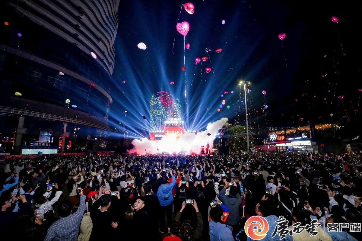 人潮涌動的民生廣場。 “我們把直播間搬進音樂節,讓‘西鄉塘臻品’乘著音樂翅膀飛向全國。”西鄉塘區商務局局長韋安介紹,本次活動以音樂為媒創新助農,打造了集音樂文化、地標溯源、消費體驗于一體的跨年盛宴,進一步釋放了消費潛能,提升城區品牌影響力。 據統計,當晚至凌晨時分,民生廣場共吸引10余萬南寧市民來此共度跨年之夜。線上直播曝光1200.5萬次,場觀410萬人,最高在線人數31萬。在“煥新消費季”系列活動期間,西鄉塘區還將在線上線下推出油品消費券、年貨大促、團圓家宴、舊車置換購車優惠四大板塊的促消費活動,全面滿足市民多元化、高品質的消費需求。 |