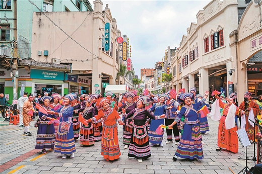 1月2日,百色市在解放街等老街區組織粵劇隊、山歌隊、民族服飾隊等隊伍開展巡游,吸引眾多游客駐足觀賞。 廣西云-廣西日報記者 游擁軍 攝 業態煥新,市場多點開花 元旦假期,密集亮相的商業新載體和品牌首店、首展,為市場注入新鮮吸引力。