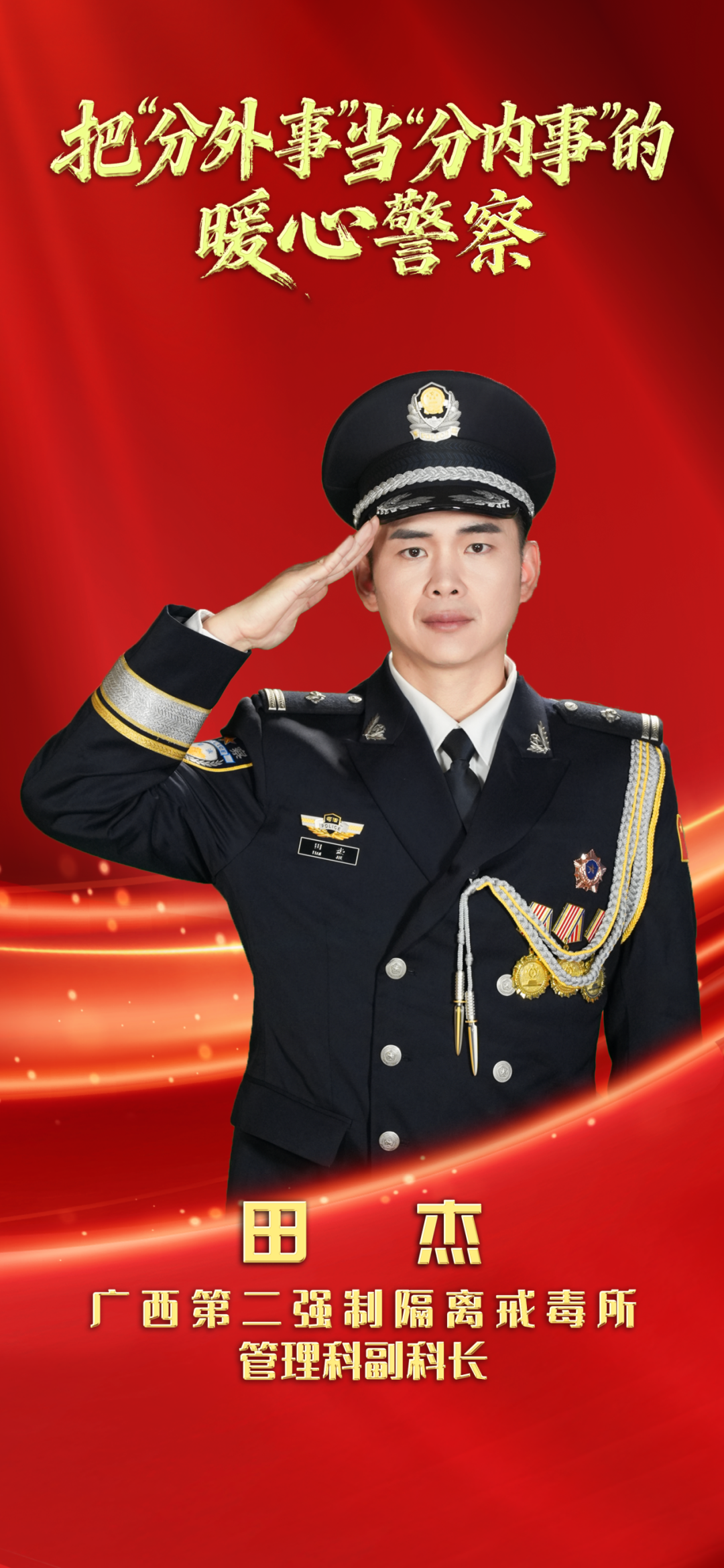 田杰:把“分外事”當“分內事”的暖心警察 戒毒人員一旦重新涉毒或脫管失控,極易埋下社會風險隱患。廣西第二強制隔離戒毒所管理科副科長田杰深知責任重大,為阻斷戒毒人員脫管風險,他主動建立 “追蹤地圖”。2025 年,他跨越單位壁壘,與多部門協作,讓6名中斷強戒的服刑人員 “點對點” 回所繼續戒治,牢牢守住社會安全防線。 而在矛盾化解一線,田杰化身 “調解員”。近三年,他接訪答疑、對接部門,用行政復議化解 18 起不服強戒決定的糾紛,16 件辦結、1 件調解撤案,讓法律條文成為化解矛盾的 “定心丸”。他還常做“分外之事”:幫解戒人員解決駕照申領難題,協調銀行入所為戒毒人員辦卡助其拿到離婚財產款,聯系機構為戒毒人員孩子完成親子鑒定助其入學…… 如今,他又成為 “智慧戒毒探路者”,2025 年牽頭搭建智能平臺,引入大模型技術,減少70% 報表工作量,并在全區競賽中獲獎,以科技創新賦能戒毒工作提質增效。