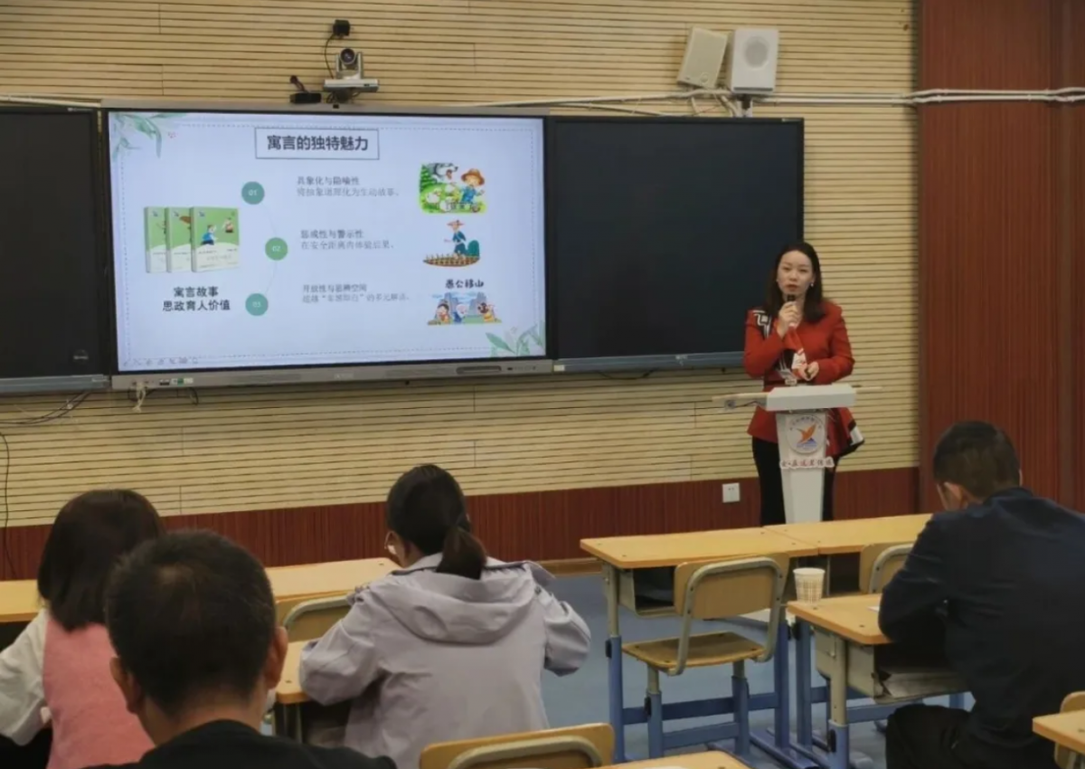 成員成長,講述教育之光 工作室成員郗春慧老師以《尋光・追光・行遠》為題,分享了在工作室引領(lǐng)下的專業(yè)蛻變——從“困頓求索”到“清晰篤行”,從學(xué)習(xí)理論到深耕課堂,最終實現(xiàn)從“被點亮”到“去點亮”的成長歷程。馬玲娜老師則結(jié)合《中國古代民間故事》課例,作《點亮心燈,塑格鑄魂》分享,生動解析如何挖掘寓言中的隱喻與警示價值,引導(dǎo)學(xué)生在閱讀中感悟誠信、責(zé)任等品格力量,讓思政育人“于故事中生根,于體驗中結(jié)果”。