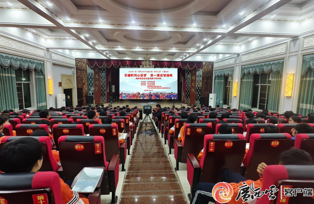 隆林各族自治縣民族中學(xué)開展“新年第一課”和觀看愛國主義電影現(xiàn)場。 |