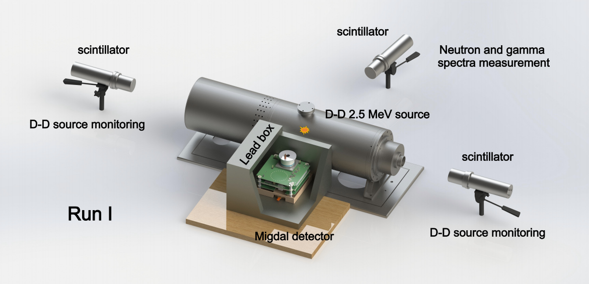 實驗裝置與布局。 進入21世紀,科學家們逐漸意識到,Migdal效應可以是突破輕暗物質探測閾值瓶頸的重要路徑之一。自理論預言提出后的80多年間,中性粒子碰撞過程中的Migdal效應是否存在,一直未被發現或證實,這使得依賴該效應的暗物質探測實驗,始終面臨“理論假設缺乏實證支撐”的質疑。