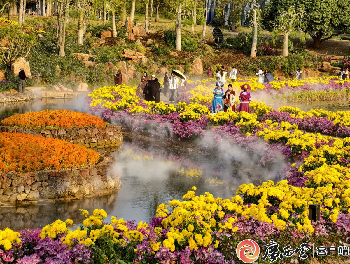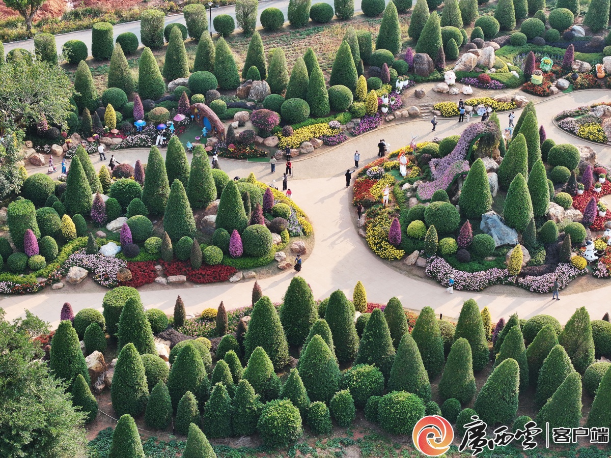 1月14日,游人在南寧市青秀山景區的丘石花園賞菊游玩 喻湘泉 攝 |