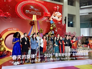 1月16日,“春天的旋律”——2026“青年好伙伴”全球跨國春晚順利完成錄制。這臺以生肖“馬”為符號的國際青年春晚,匯聚了中國、英國、尼日利亞、巴西及東盟國家等國的青年藝術家,通過“青年共創(chuàng)”與“科技賦能”雙主線,呈現了一場文明互鑒的青春派對。圖為多國青年演員相聚場外合影打卡。記者 甘艷霞 攝(廣西云-廣西日報)
