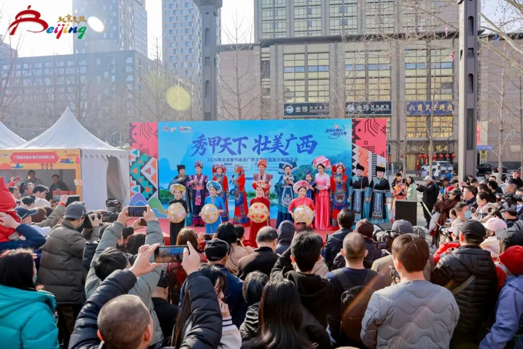 “桂”客盈門·策馬躍潮年——2026年春節文化旅游活動現場。圖源:桂林市融媒體中心 以多元豐富的產品供給激發文旅消費潛力。自治區文化和旅游廳組織展團攜八桂文化精品進京,通過精品線路推介、民族歌舞展演等多種方式,全景展現廣西的獨特韻味。
