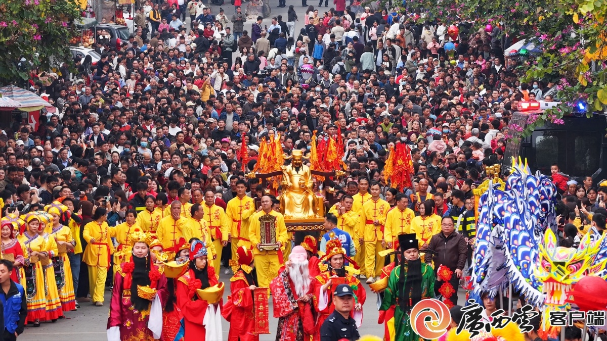 桂平西山風(fēng)景名勝區(qū)春節(jié)財(cái)神巡游活動(dòng)。桂平市融媒體中心供圖 桂平全市各大景區(qū)與鄉(xiāng)村旅游點(diǎn)各展所長(zhǎng)、特色紛呈,推出系列年味十足的文旅活動(dòng),讓市民游客沉浸式體驗(yàn)新春美好。西山風(fēng)景名勝區(qū)延續(xù)“福”文化內(nèi)核,新春國(guó)潮巡游、迎春雅韻匯演、財(cái)神送福等活動(dòng)輪番上演,吸引眾多游客駐足觀賞。桂澳公園則開啟“新春嗨唱”模式,多支本土樂隊(duì)駐唱獻(xiàn)演,市民游客在江畔燈火中聽歌賞景,感受“白天登高祈福、夜晚聽歌賞景”的全天候新春體驗(yàn)。