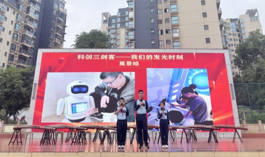 桂花校區的“科創三劍客” 桂雅校區科創社團秀機器人表演、合唱壯鄉歌曲,桂花校區機器人送春聯、師生齊誦,古箏社團奏響經典,傳統與科技交相輝映。全體師生以昂揚姿態開啟新學期,將以少年之姿承文化之脈、踐科創之行,奔赴新征程。