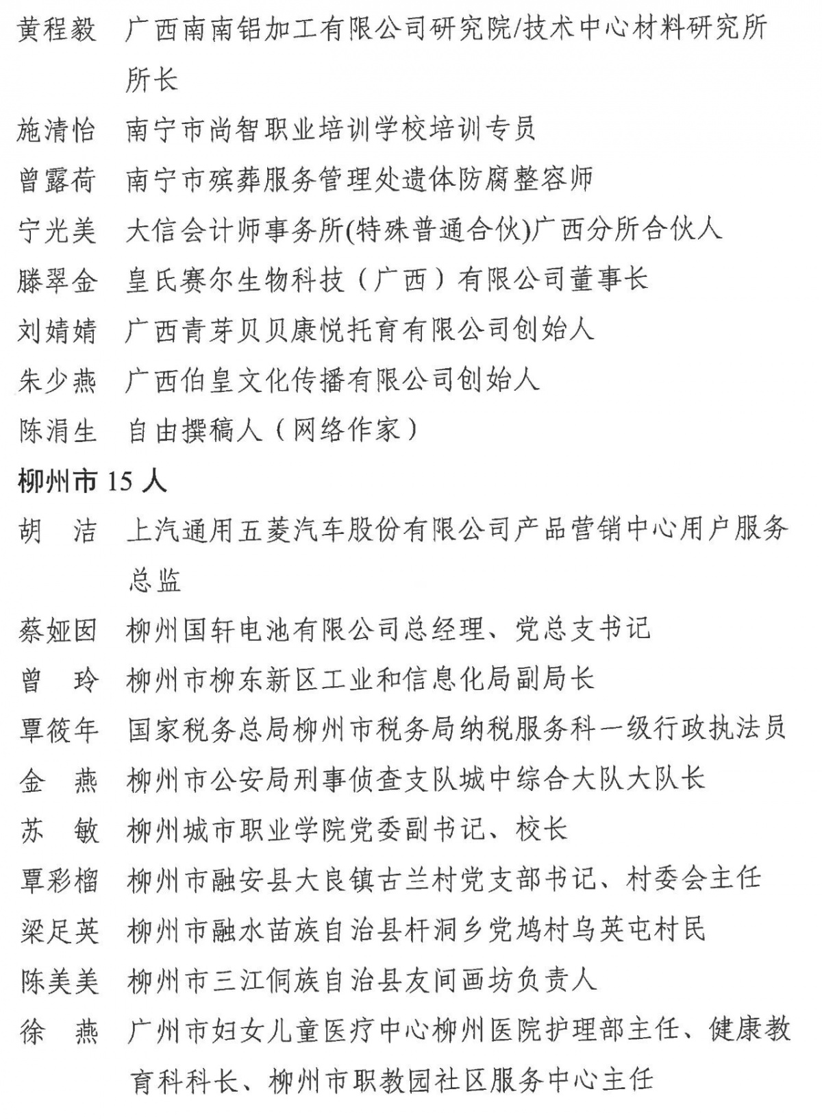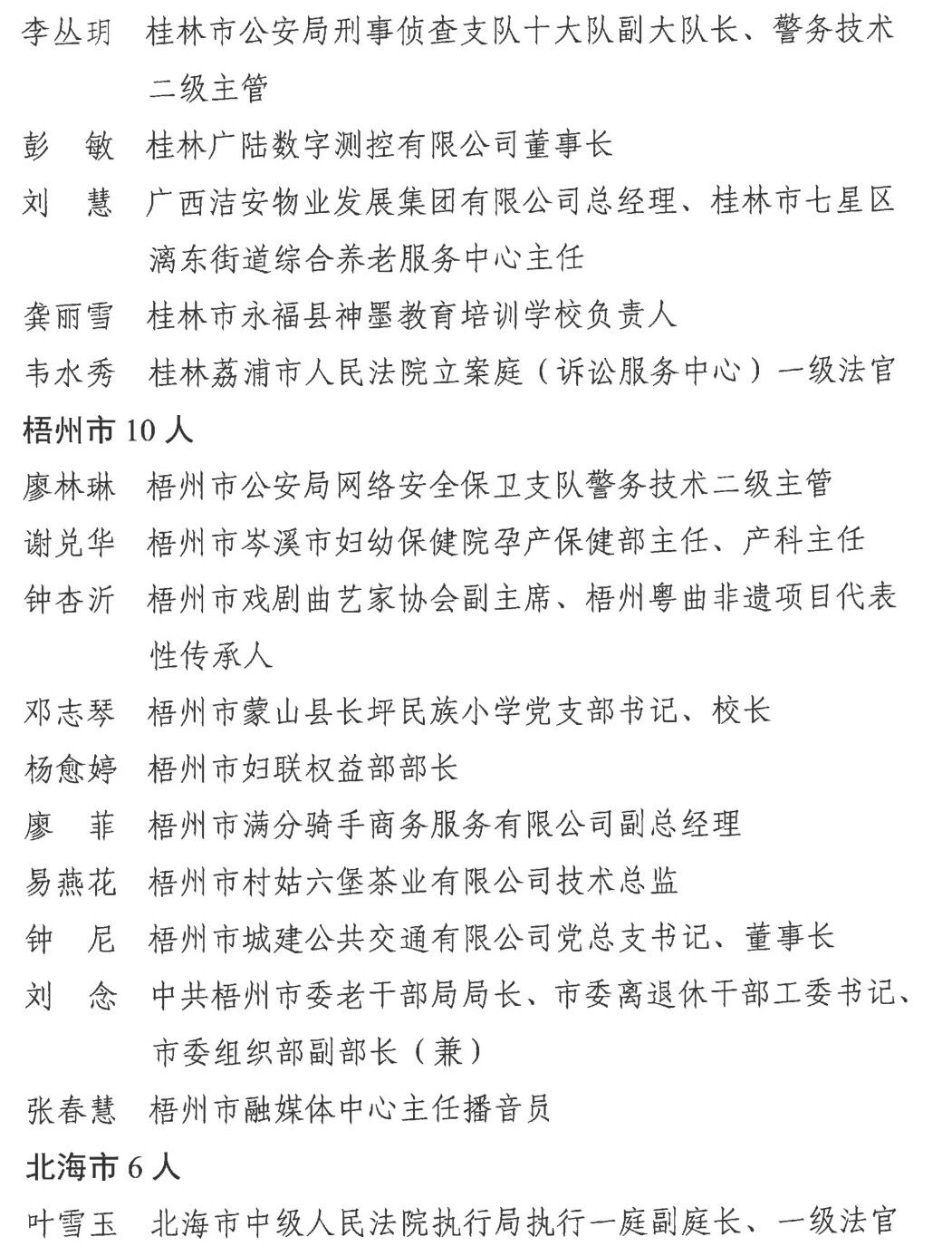 在第116個“三八”國際勞動婦女節來臨之際,3月5日,記者從自治區婦聯獲悉,2026年廣西三八紅旗手標兵、三八紅旗手、三八紅旗集體表彰名單正式公布。 為表彰先進、樹立榜樣,激勵廣大婦女自尊自信、自立自強,奮進新征程、建功新時代,自治區婦聯決定,授予蔣三努、林博、甘惠貞等10人廣西三八紅旗手標兵稱號,授予農彥妮、蒙琳、莫曉春等200人廣西三八紅旗手稱號,授予南寧市良慶區良慶鎮宋廂社區居民委員會等100個單位廣西三八紅旗集體稱號。 受表彰的先進個人和集體遍布全區各地、各行各業,涵蓋政務、企業、農業、教育、醫療、基層治理、科研等多個領域,她們在鄉村全面振興、科技創新、基層服務、經濟發展等主戰場上拼搏實干、奮勇爭先,在新時代壯美廣西建設中彰顯巾幗擔當、展現時代風采。 自治區婦聯希望受表彰的先進個人和集體,珍惜榮譽、再接再厲,發揮示范引領作用,在新征程上勇挑重擔、再創佳績。同時,號召全區廣大婦女以先進典型為榜樣,見賢思齊、感恩奮進,以實干擔當為廣西經濟社會高質量發展貢獻巾幗力量。 廣西三八紅旗手標兵名單