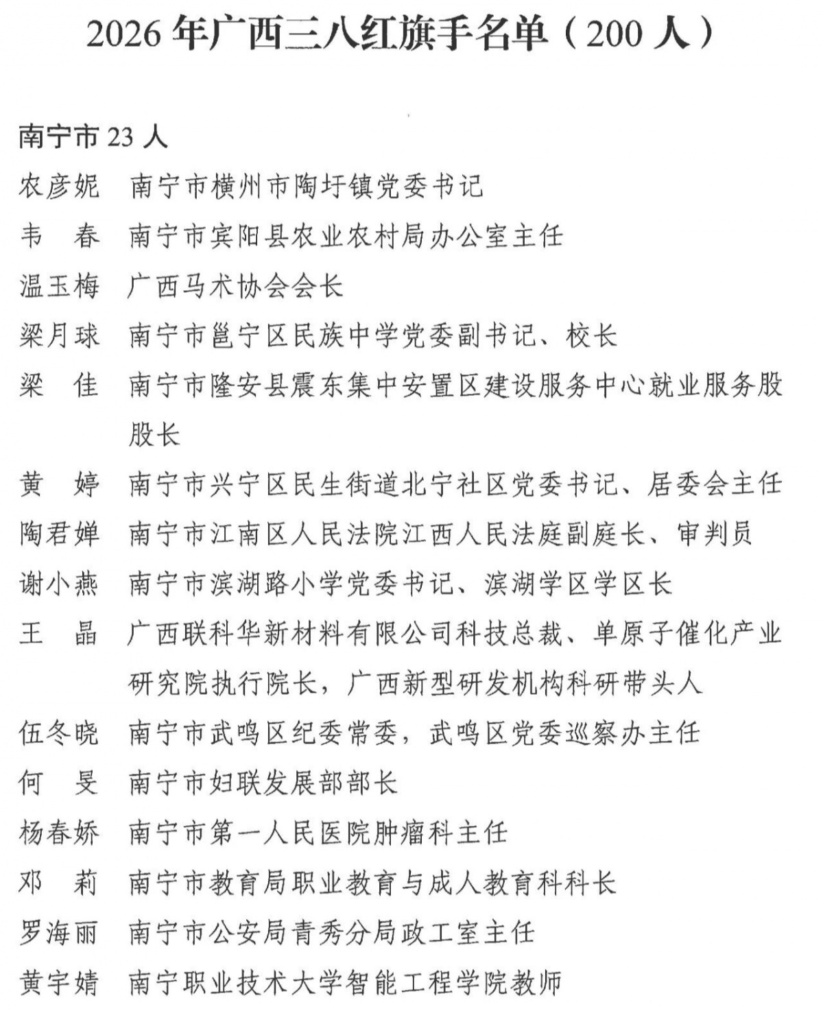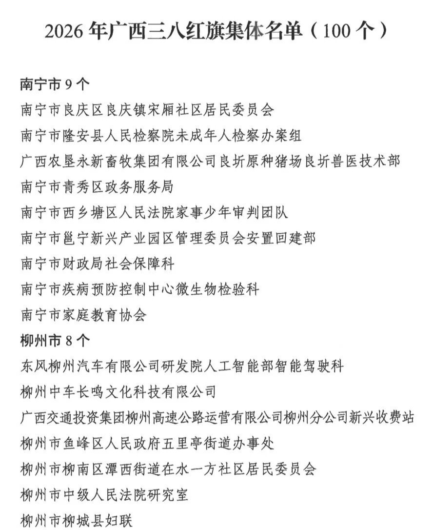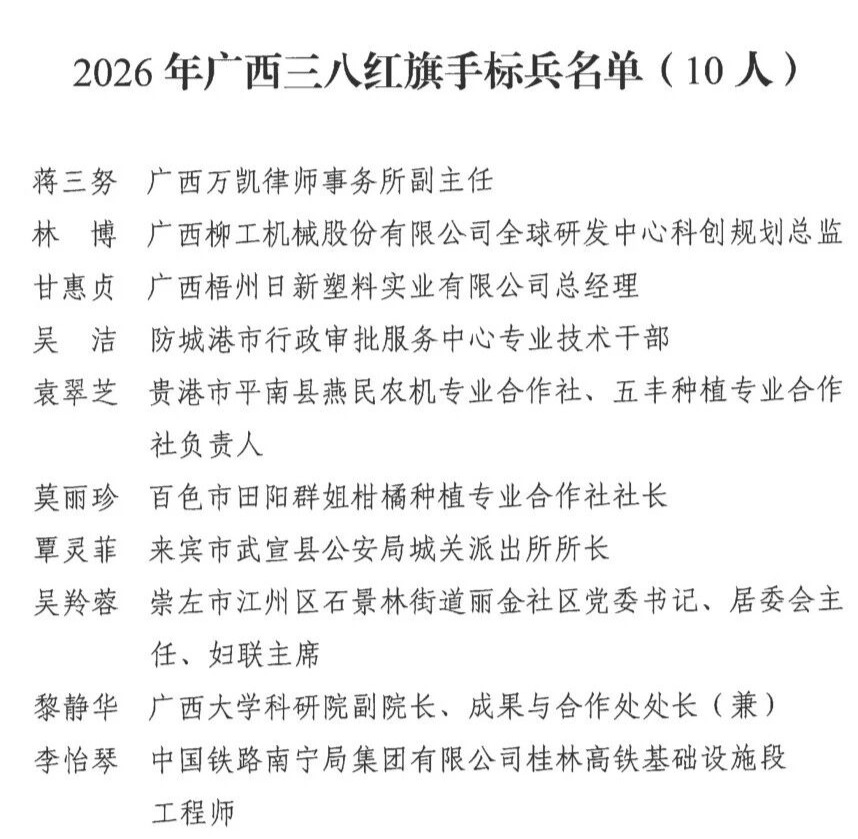 重磅!2026年廣西三八紅旗手標兵、廣西三八紅旗手、廣西三八紅旗集體名單來了! |