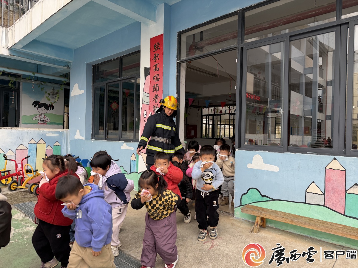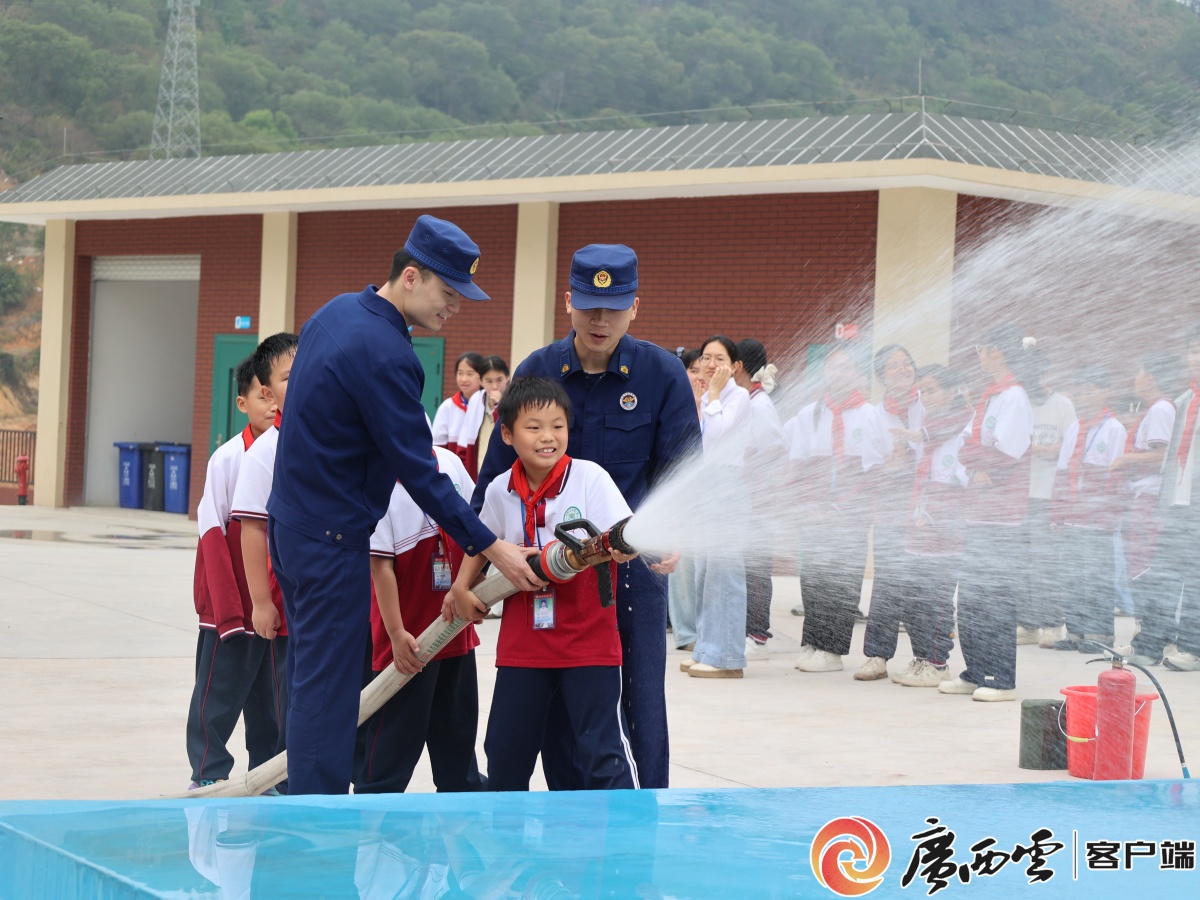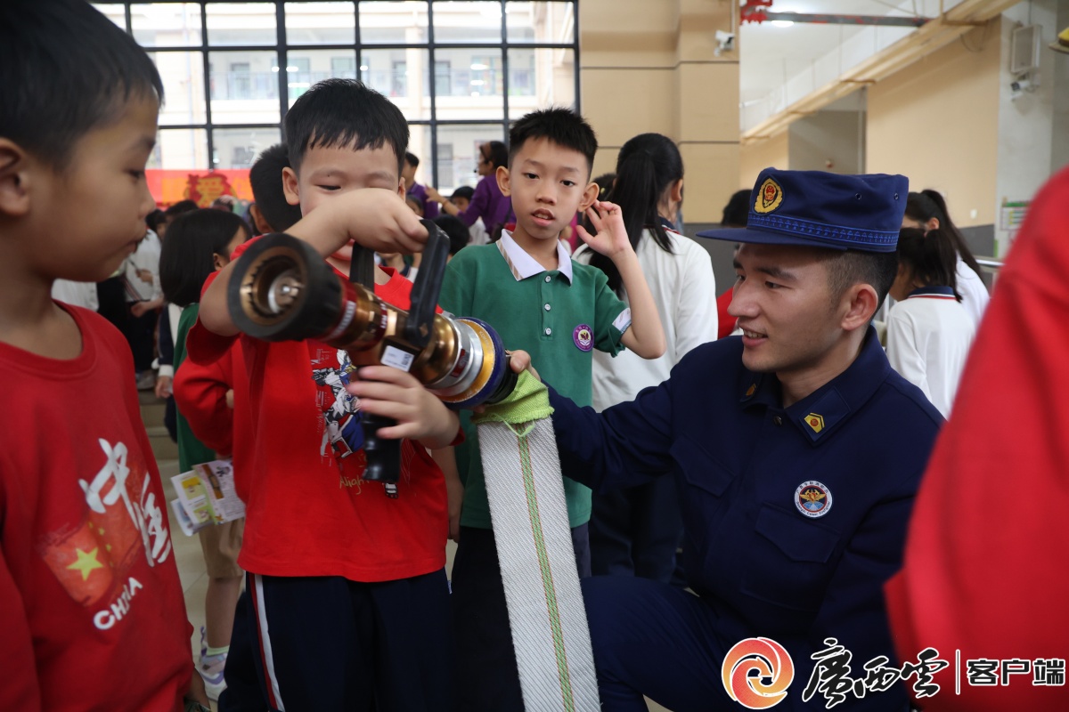 應急疏散演練。 消防技能實操環節,讓孩子們親手解鎖安全技能。梧州、貴港等地的消防宣傳員,現場示范滅火器等器材操作,指導學生上手實操,讓同學們在親身體驗中掌握消防技能。此外,各地還同步開展應急疏散演練,師生們在指揮下,捂鼻彎腰、低姿有序撤離,有效提升了校園應急處置和自救逃生能力。