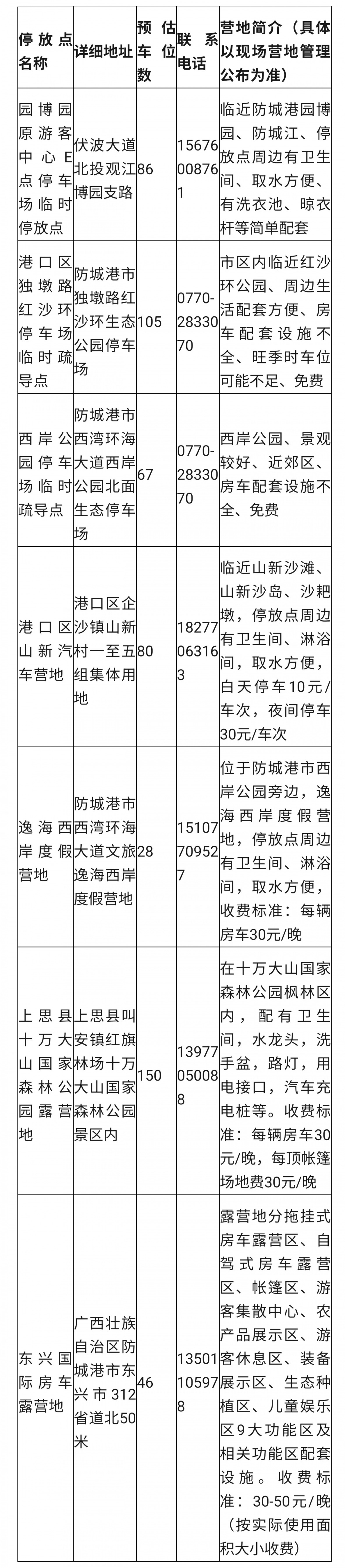 為進一步規范旅居車停放秩序、維護城市市容環境,防城港市近日發布《關于加強旅居車管理的通告》,對進入市域范圍內的旅居車行車停放、市容衛生、寵物管理、文明旅游等方面作出明確規定,劃定嚴管區域并公布已開放營地和臨時停放點信息,違規行為將依法追究責任,通告自發布之日起施行。具體公告如下: 為進一步規范防城港市旅居車(房車)停放秩序,維護整潔優美的城市環境,結合防城港市實際,現就旅居車管理有關事項通告如下: 一、本通告所稱旅居車(又稱房車),是指裝備有睡具(可由座椅轉換而來)及其他必要生活設施、用于旅行宿營的汽車。 二、駕駛旅居車進入防城港市,應當遵守《中華人民共和國道路交通安全法》《防城港市機動車停車管理條例》等規定,做到文明行車、有序停放。旅居車宿營過夜或長時間停放的,應當到房車營地、專用停車場或經營性停車場規范停放。嚴禁在未劃定停車泊位的公共區域違規停放,嚴禁一車占用兩個以上公共停車泊位、逆向停放或停放時阻礙其他車輛、行人通行。 三、駕駛旅居車進入防城港市,應當遵守《防城港市城市市容和環境衛生管理條例》等規定,嚴禁在城市道路兩側、公共用地、市政公共停車場、公園廣場等城市公共場地擺放桌椅、搭設帳篷、懸掛吊床、晾曬衣物、私拉水電、損壞市政設施、明火烹飪燒烤,禁止隨意傾倒生活污水、餐廚垃圾及其他廢棄物和堆放雜物等其他影響城市市容環境衛生的行為。 四、攜帶寵物的旅居車駕駛人及同行人員,應當遵守《中華人民共和國治安管理處罰法》《防城港市養犬管理規定》等規定,加強寵物管理,防止寵物擾民,及時清除寵物排泄物,保持環境整潔。 五、自覺遵守《中華人民共和國旅游法》《廣西壯族自治區文明行為促進條例》,踐行《防城港市民公約》、文明出行、文明旅游。 六、各縣(市、區)人民政府嚴格落實屬地管理責任,做好旅居車停放服務保障工作,統籌相關部門加強監管執法。對違反相關法律法規規定的,依法追究其責任。 七、本通告由防城港市住房和城鄉建設局、防城港市公安局、防城港市文化廣電體育和旅游局負責解釋。 八、本通告自發布之日起施行。 附件:1.防城港市部分已開放旅居車營地、臨時停放點信息 2.旅居車停放嚴管區域 防城港市住房和城鄉建設局 防城港市公安局 防城港市文化廣電體育和旅游局 2026年2月12日 附件1 防城港市部分已開放旅居車營地、臨時停放點信息