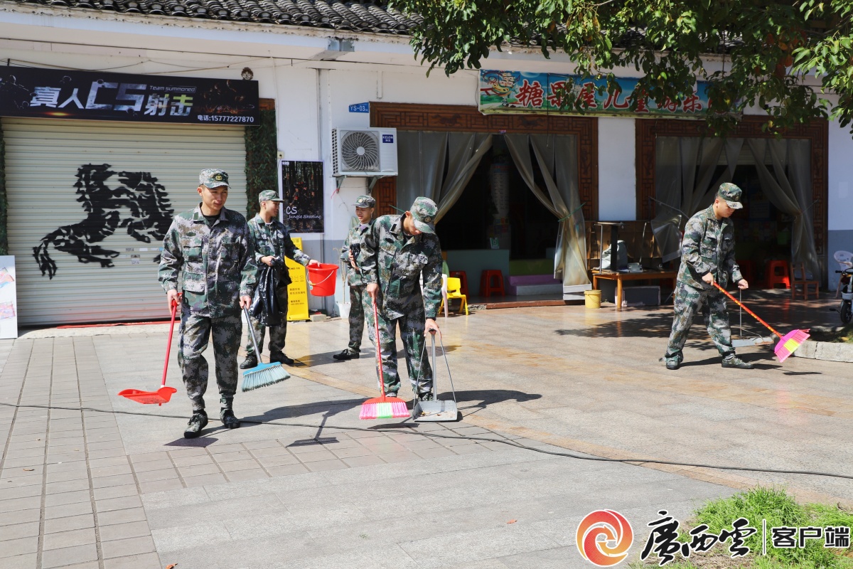 圖為活動現場,預定新兵們在為群眾服務。覃美 謝伊佳 攝