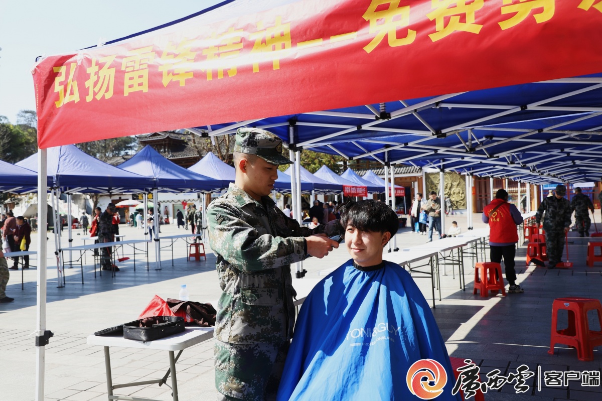 圖為活動現場,預定新兵們在為群眾服務。覃美 攝 3月5日,融水苗族自治縣體育公園內涌動著一股“迷彩綠”的暖流。當日,一群即將踏入軍營的預定新兵在此開展“學雷鋒”主題志愿服務活動,以實際行動傳承和弘揚雷鋒精神。 活動現場,預定新兵們分工協作,干勁十足。他們手持掃帚、鐵鏟等工具,認真清掃公園道路上的垃圾雜物,仔細清理墻面、電線桿上的“牛皮癬”小廣告,不放過任何一個衛生死角。此外,幾名有理發特長的新兵還臨時設立了“愛心義剪”點,耐心細致地為過往市民,特別是老年人和小孩免費理發,嫻熟的技術和熱情的服務贏得了市民們的紛紛點贊。
