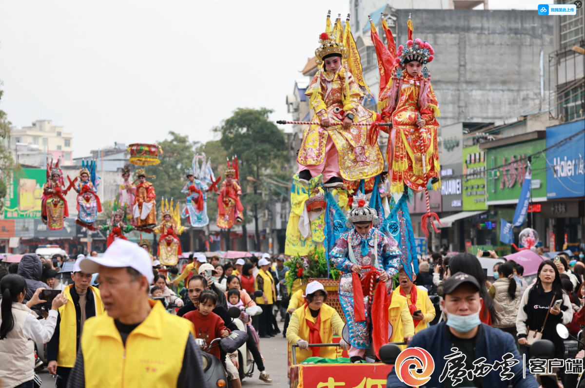 山口元宵年例巡游。記者 周映 通訊員 畢建東 攝制 鬧年例是合浦縣山口鎮(zhèn)一年一度慶元宵的特色民俗。3月2日上午,合浦縣山口鎮(zhèn)舉行盛大的年例巡游活動,非遺飄色等民俗雅事吸引眾多游客前來共赴民俗之約。