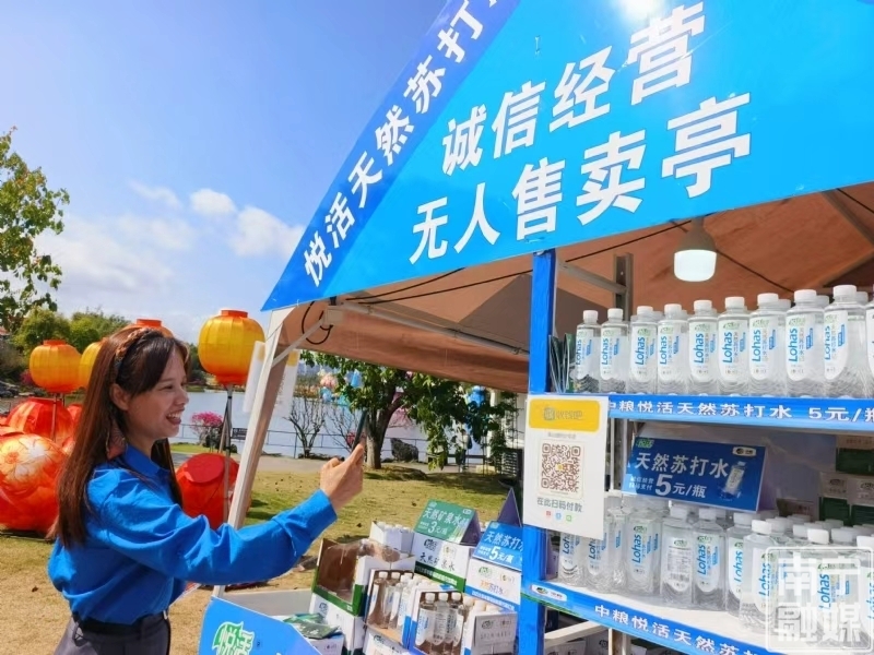 有整齊碼放的礦泉水,有收款碼,有“誠信經(jīng)營,無人售賣,掃碼自取” 的提示語。在南寧青秀山風景區(qū),這樣的平價無人售水攤已經(jīng)“存在”了兩年,從未出現(xiàn)混亂、丟失、逃單現(xiàn)象。即便是春節(jié)假期單日客流超23萬人次的高峰時段,無人售水攤依舊平穩(wěn)運行。